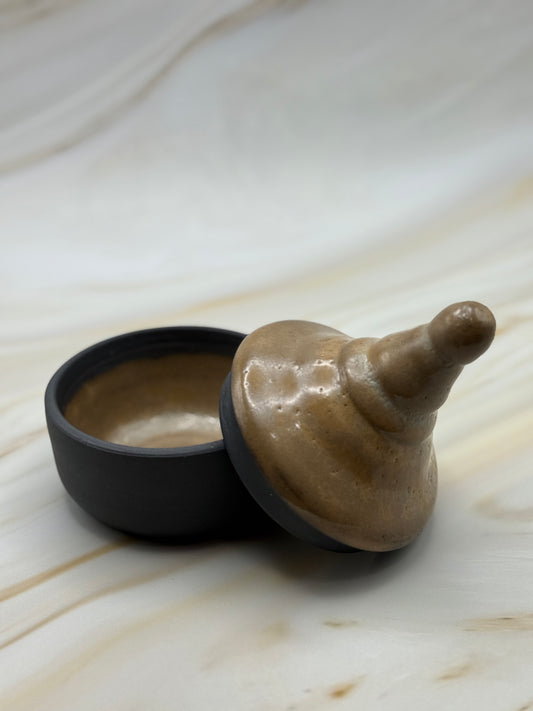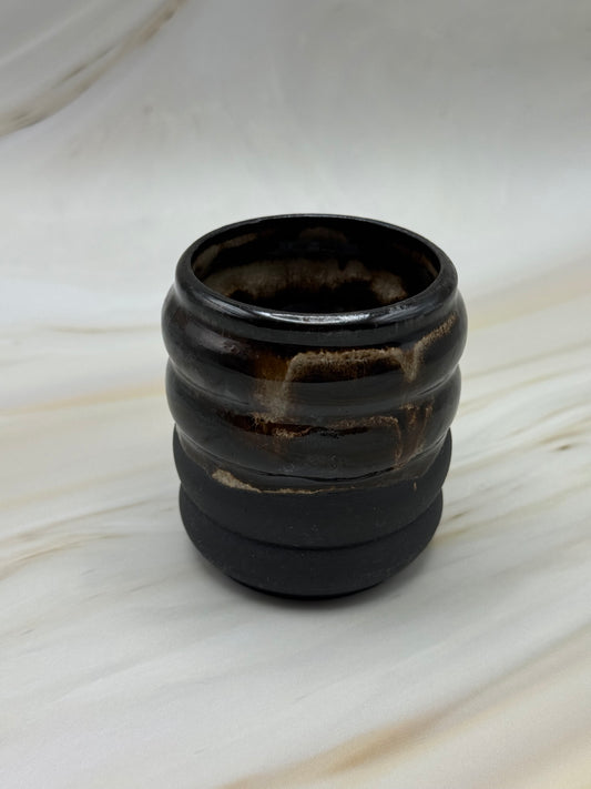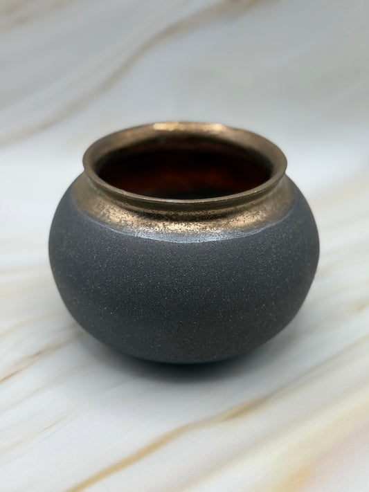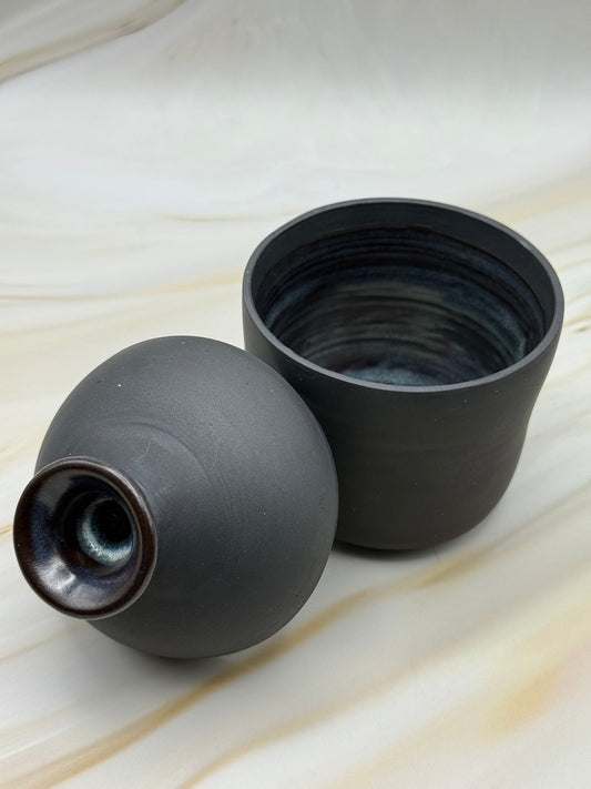 This collection draws from the imagined lore of an archaeological recovery — Site 12A, where vessels surfaced like remnants of another world. Each piece feels unearthed and cataloged: obsidian-dark clay, mineral sheens, metallic finishes, and glazes that echo landscapes of fire, erosion, and desolation.