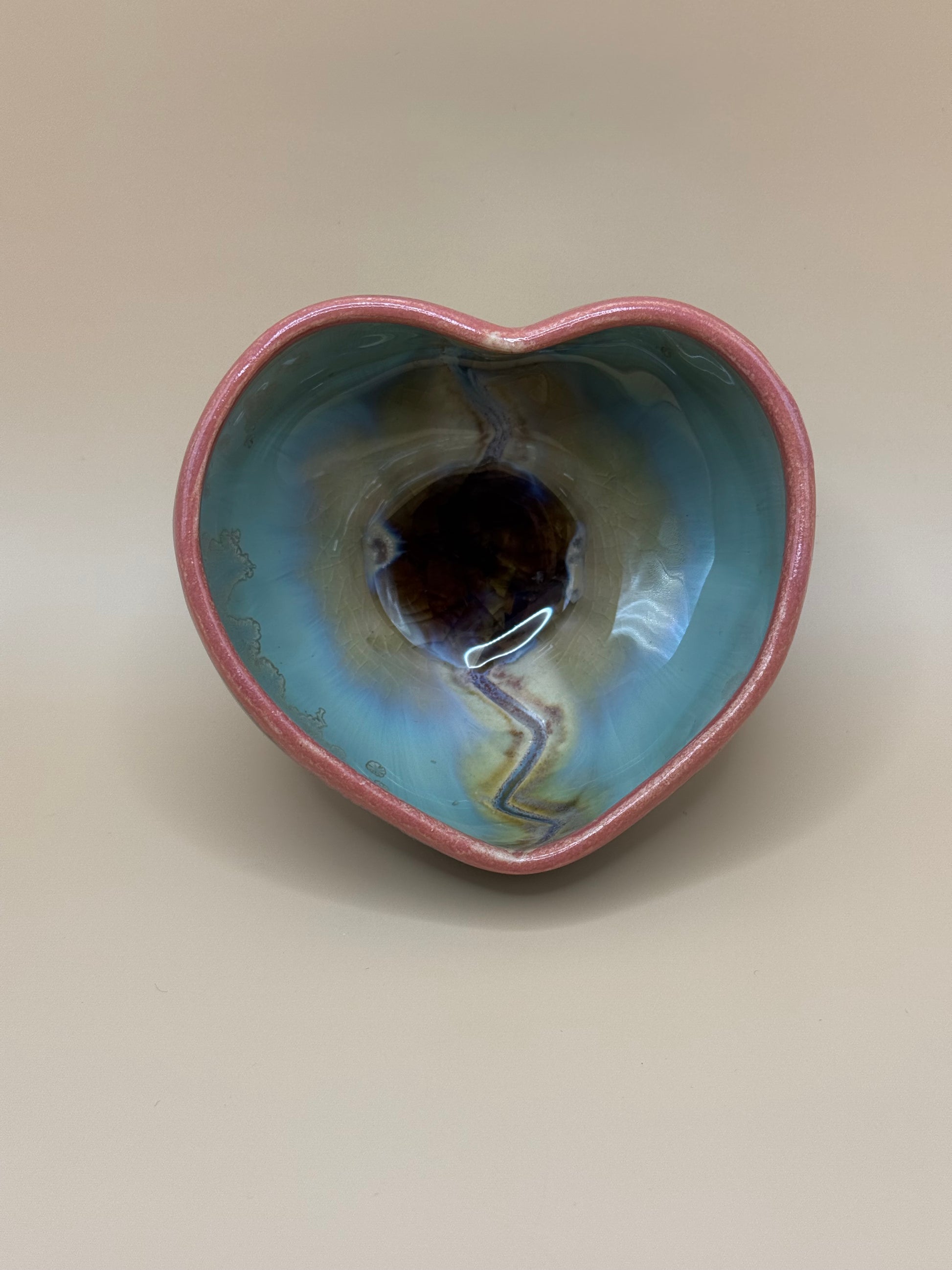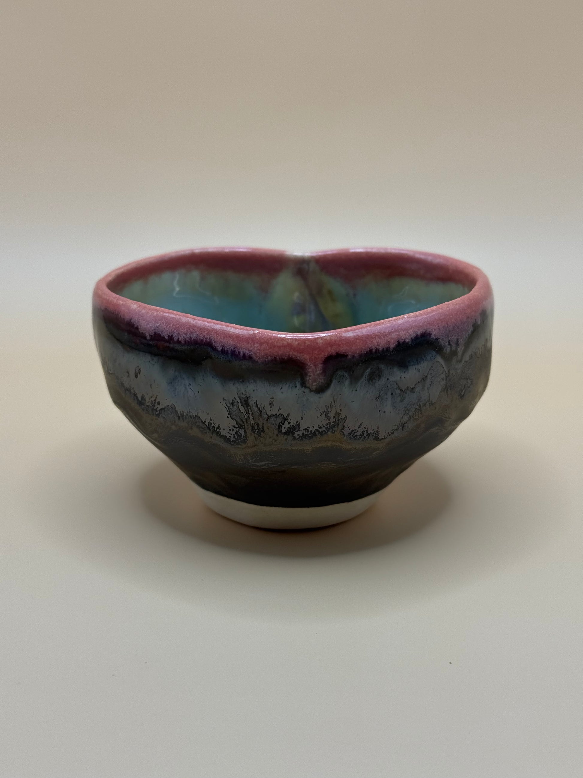 The first piece that sparked the collection. Its form leans into imperfection — a heart with a jagged split down the middle, like the classic image of one that’s been struck. When it was pulled from the wheel, the base had been accidentally cut through. Repaired and re-centered, it carries the mark of that moment in its foundation.