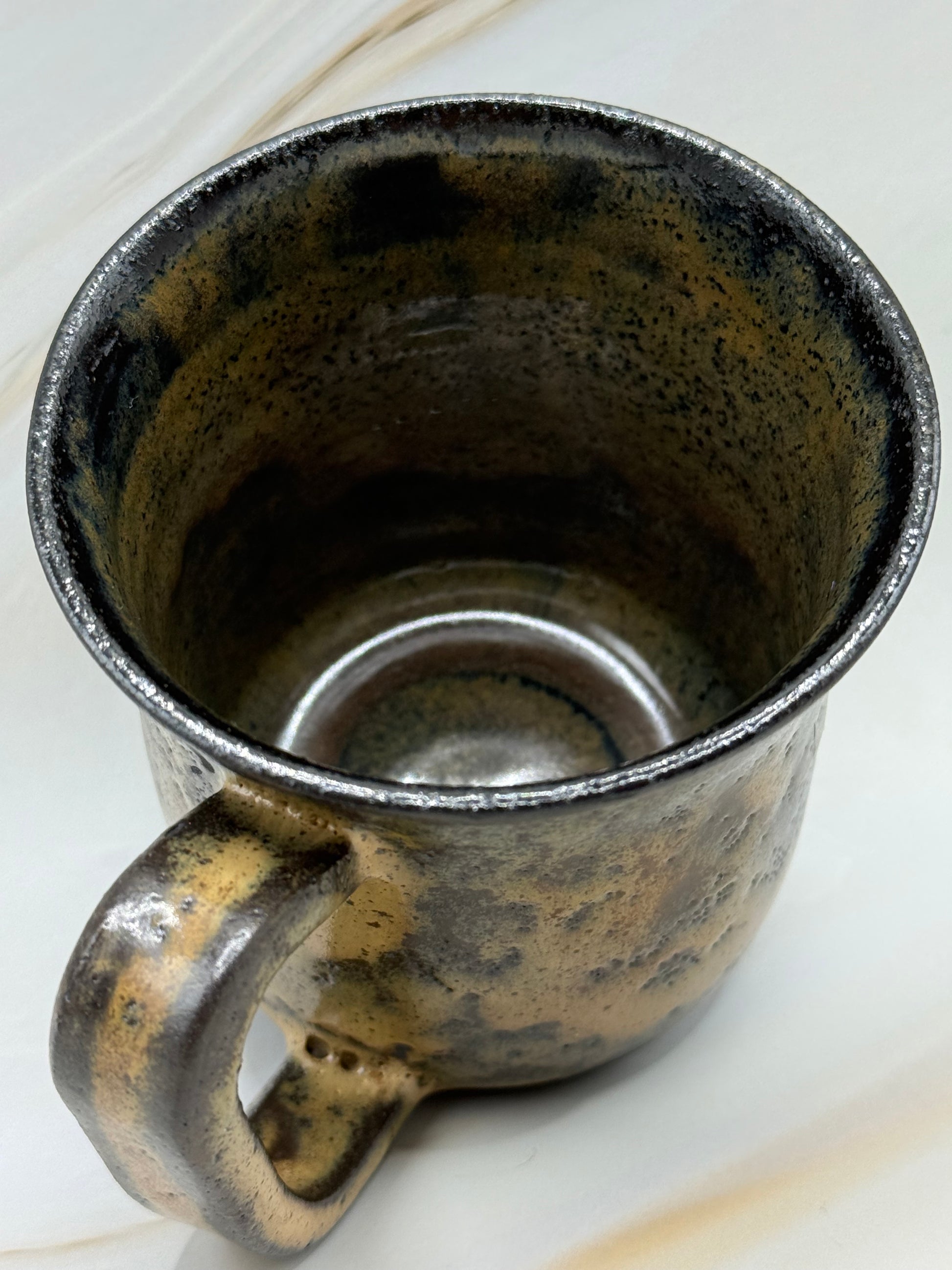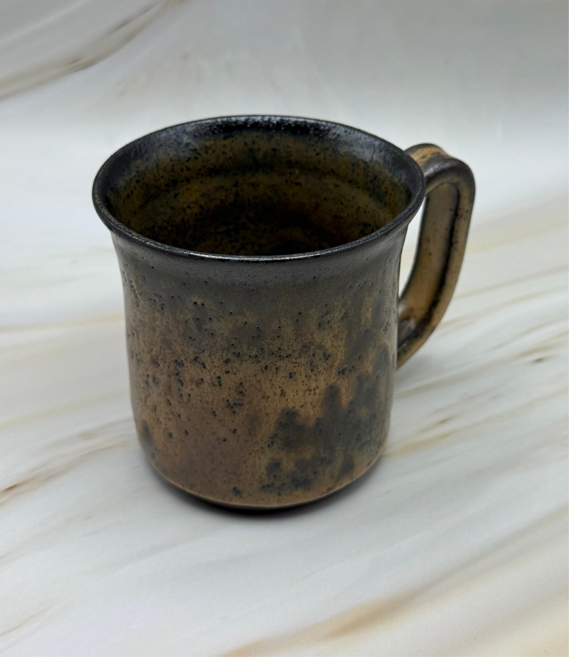 Artifact A-M-04, recovered from the Arid Flats excavation site of Obsidian-12A, carries a burnished ochre-to-charcoal finish that feels hardened by heat and wind. The surface shows gentle transitions of tone — earth baked beneath relentless sun, its form both sturdy and timeworn.