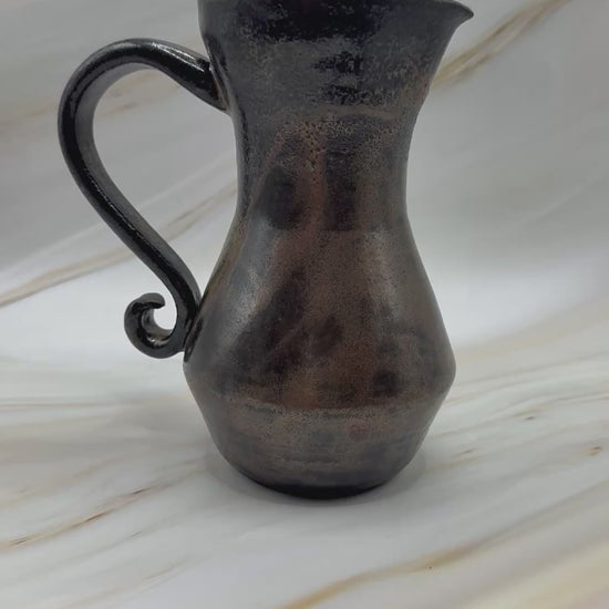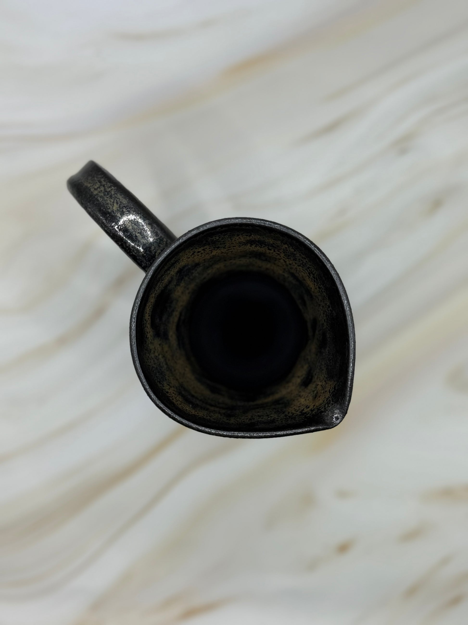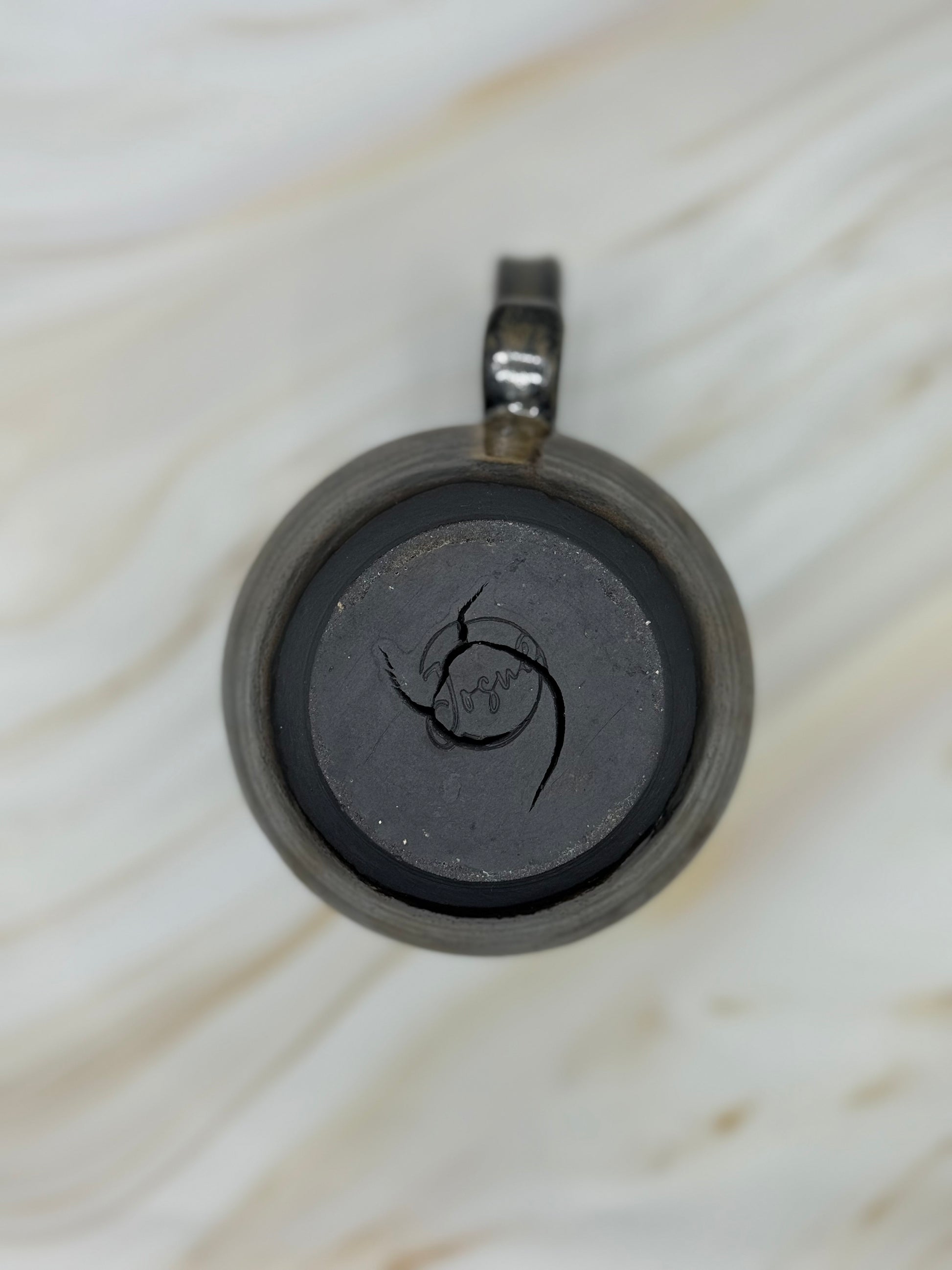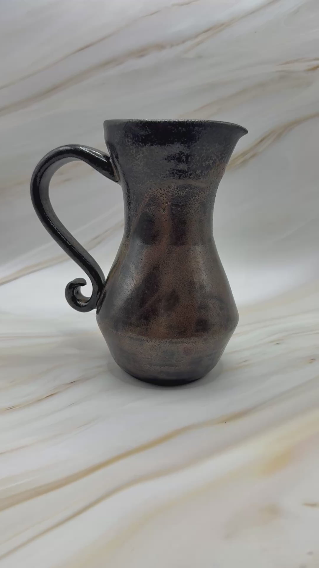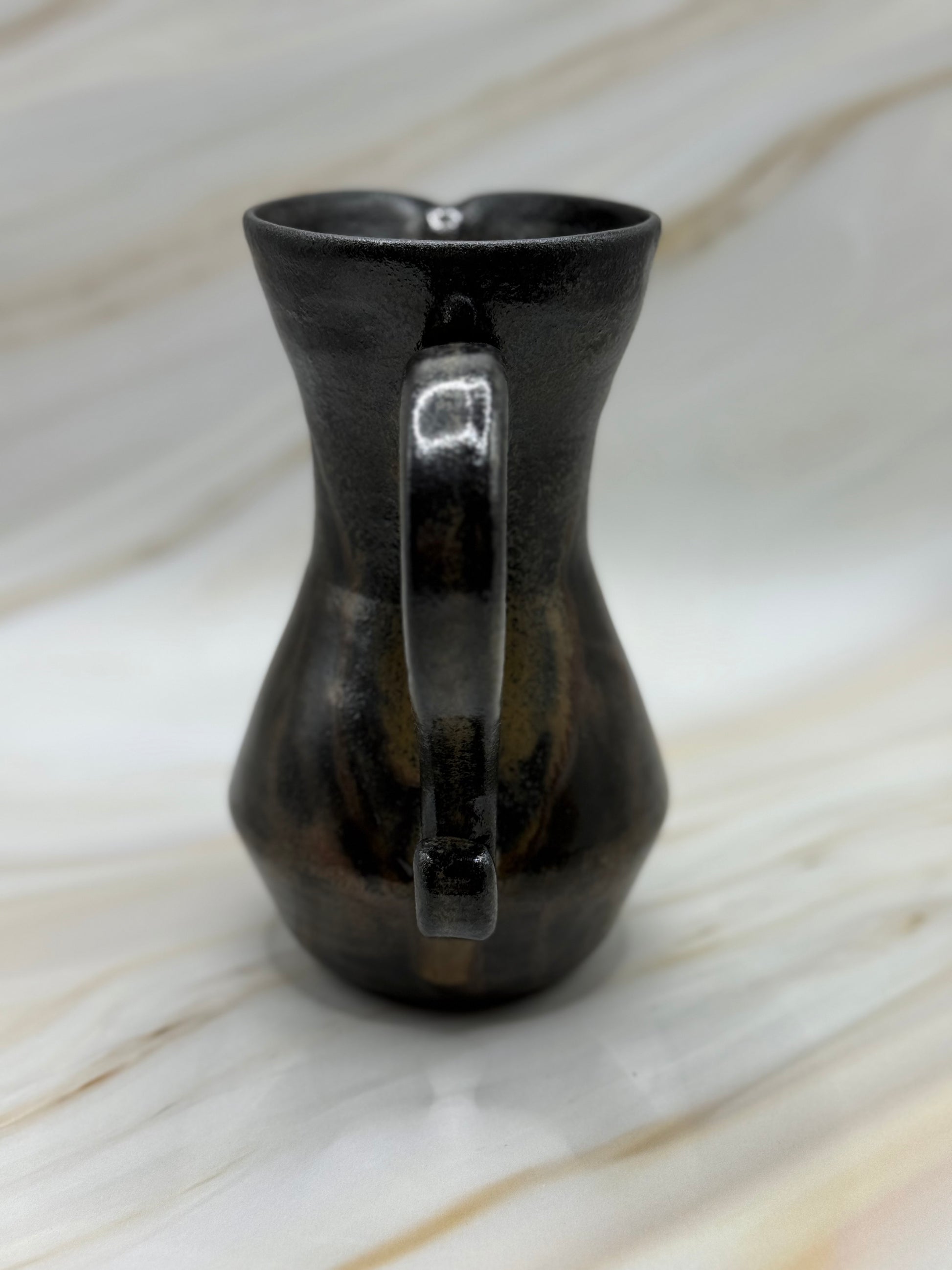 Artifact X-X-01, recovered near the convergence of the four excavation regions of Obsidian-12A, is believed to have been shaped from clays gathered from each site and fired in a single kiln. Its form—broad-bodied with a slender neck and a single curled handle—embodies balance and intention. Across its surface, the blended hues of pale dust, earthen tan, deep grey, and faint metallic sheen echo the materials and methods of all four terrains.